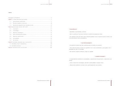 plano de atividades 2013 + EXCELÊNCIA É… …Qualidade; especialidade; primazia. …Não é a perfeição. É procurar melhorar a cada dia nas pequenas coisas. …Ser empático acima de tudo e ético antes de qualquer coisa. É executar para os outros e ter o reconhecimento como consequência. + SUSTENTABILIDADE É… …O modelo de sistema que tem condições para se manter ou conservar. …Uma união de pessoas vivendo em equilíbrio com os seus semelhantes, preocupadas com a qualidade de vida e a felicidade. …Dar suporte a alguma condição, a algo ou a alguém. + COMPETITIVIDADE É… …A capacidade de satisfazer as necessidades e expectativas de quem serve, cumprindo a sua missão. …Inovar, desenvolver estratégias, descobrir oportunidades e mapear riscos. … Desenvolver produtos e serviços com a participação dos seus utentes. Cáritas Diocesana de Coimbra 3 20