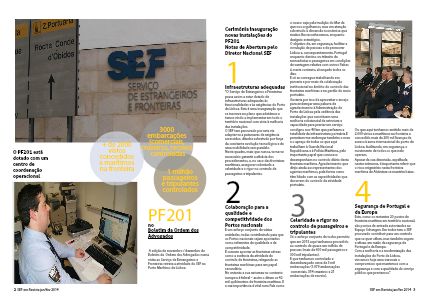 ger ultricies a PF201 no Boletim da Ordem dos Advogados A edição de novembro / dezembro do Boletim da Ordem dos Advogados numa visita ao Serviço de Estrangeiros e Fronteiras retrata a atividade do SEF no Porto Marítimo de Lisboa. 2 Nulla lobortis sagittis Donec lobortis congue fringilla. Donec consequat ornare sodales. Nunc posu- ere mattis mi, ut facilisis ligula accum- san vel. In consectetur accumsan diam, eget porttitor justo luctus id. Nulla porta nibh sed lacus feugiat fringilla. Nam ut leo augue. O PF201 está dotado com um centro de coordenação operacional 2 SEF em Revista jan/fev 2014 1 milhão passageiros e tripulantes controlados 3000 embarcações (comerciais, cruzeiros, recreio) controladas + de 2000 vistos concedidos a marítimos na fronteira