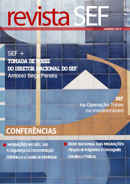 revista SEF JANEIRO 2015 SEF + tomada de posse do diretor nacional do sef MIGRAÇÕES NO SÉC. XXI Conferências Atração de Imigrantes e Demografia: Desafios e Práticas A Segurança na Documentação Eletrónica e a Cadeia de Identidade REDE NACIONAL DAS MIGRAÇÕES António Beça Pereira SEF na Operação Triton no mediterrâneo