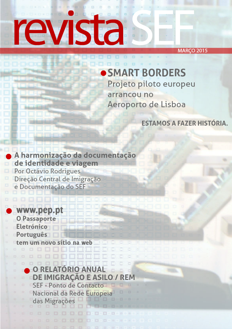 revista SEF MARÇO 2015 SMART BORDERS Projeto piloto europeu arrancou no Aeroporto de Lisboa ESTAMOS A FAZER HISTÓRIA. O RELATÓRIO ANUAL DE IMIGRAÇÃO E ASILO / REM SEF - Ponto de Contacto Nacional da Rede Europeia das Migrações www.pep.pt O Passaporte Eletrónico Português tem um novo sítio na web A harmonização da documentação de identidade e viagem Por Octávio Rodrigues Direção Central de Imigração e Documentação do SEF